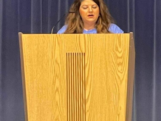 Following the meal, Bree McReynolds-Baetz Lincoln Alumni Association Board Member addressed the crowd. McReynolds-Baetz, also a member of USD298 Board of Education, welcomed the alumni crowd and guests, reviewed account balances and announced Lincoln Alumni Scholarship recipients over the last two years. It’s fun to note that due to her height, or lack thereof, she stood on tiptoes during the entire address so she could see and be seen above the podium!